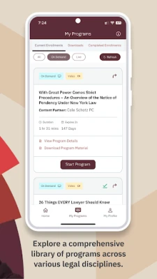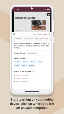 • Earn Credits: Earn Continuing Legal Education credits from your personalized list of jurisdictions directly through the player.