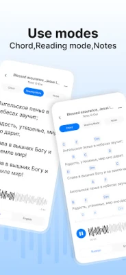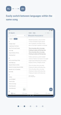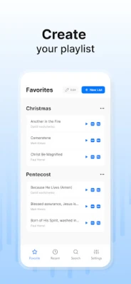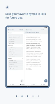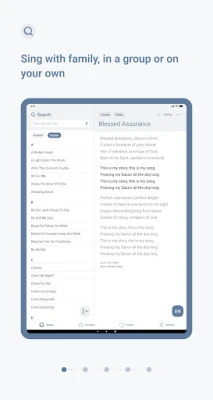 Play music, using provided cords and notes. Save your favorite hymns in lists for future use.