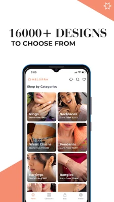 • Buy your jewellery from the comfort of your home. Get the best online jewellery shopping experience with the Virtual Try-on feature on the all-new Melorra Jewellery Shopping App that offers free shipping, a 30-day hassle-free returns policy, lifetime exchange and a convenient cash-on-delivery (COD) option.