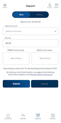 The Santa Fe FCU Mobile Banking Application grants enrolled members access to their accounts to check balances, view transaction history, and transfer funds. Members can also set up alerts to be received on mobile or email. Members can also access general banking information about Santa Fe FCU.