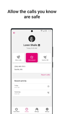• Scam Block – Our network will automatically block calls from likely scammers, when you turn it on, helping to keep them off your phone entirely.