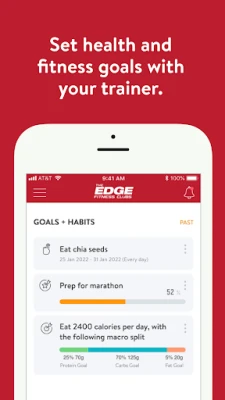 With The Edge Fitness app, you can start tracking your workouts and meals, measuring results, and achieving your fitness goals, all with the help of your personal trainer.