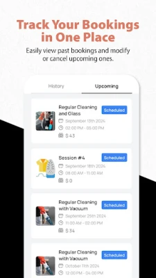 The House Keeping app will help you to book and schedule your cleaning sessions with just one click.